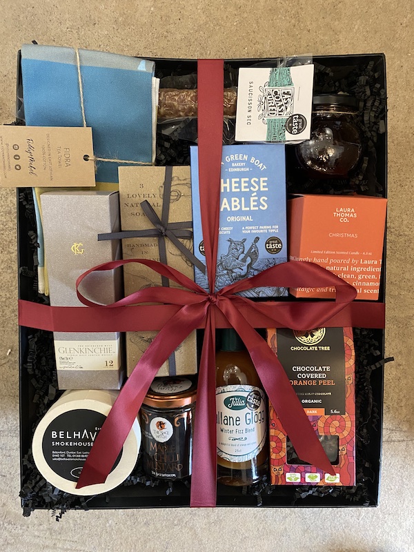 Online, choose from our pre-selected hampers below, or scroll down the ‘Categories’ column to the left of this text to find Build Your Own.